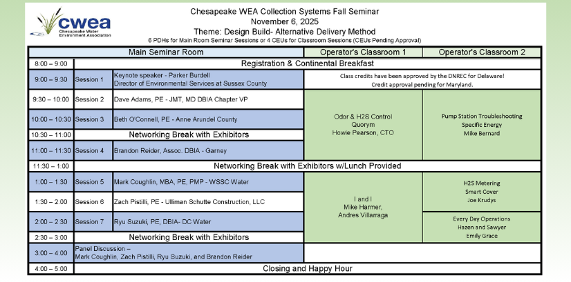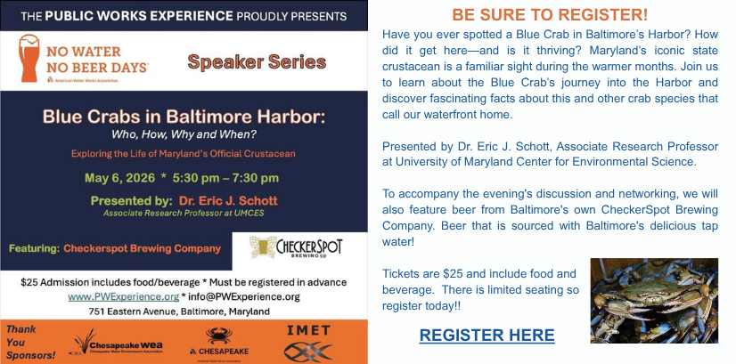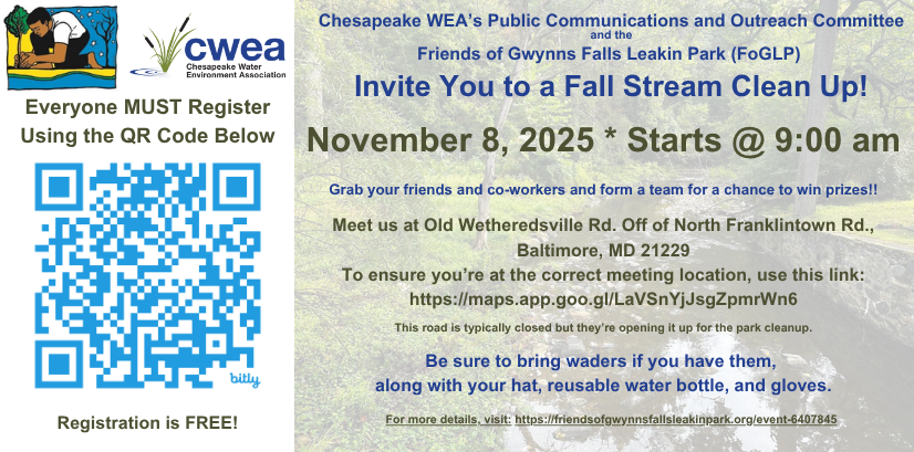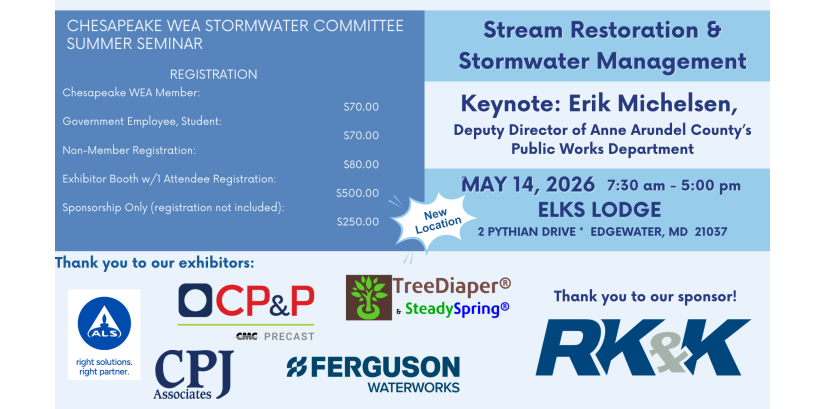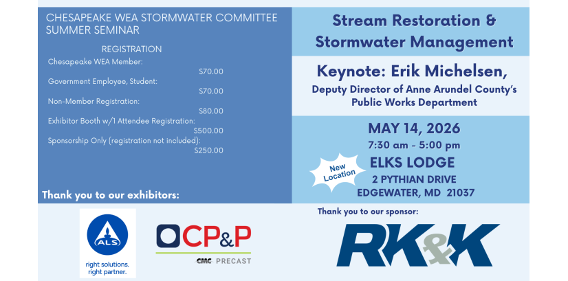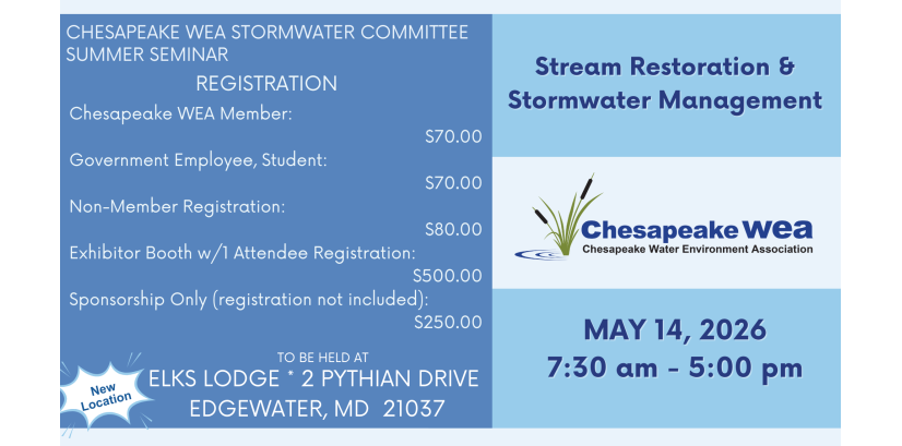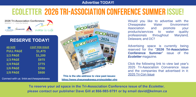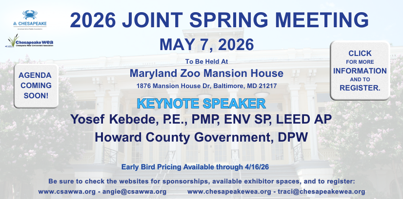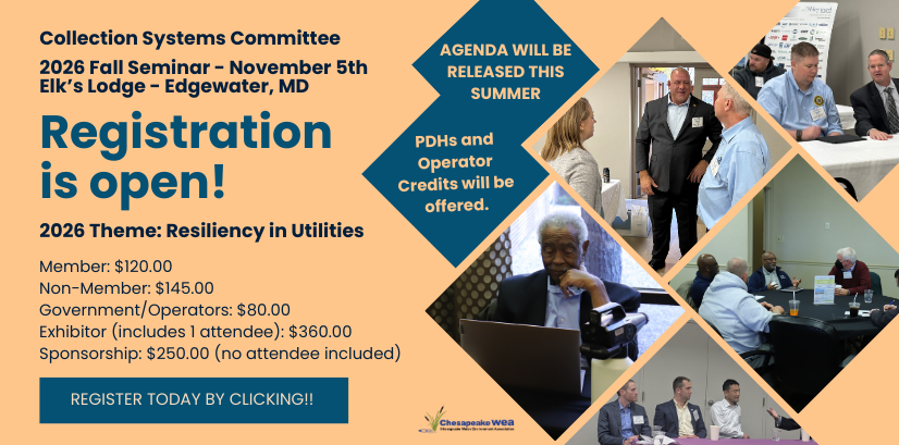 The Chesapeake Water Environment Association is dedicated to improving water quality and protecting the water environment in Delaware, Maryland, and the District of Columbia. The Association strives to do this through public education, the exchange of technical and scientific information among water quality professionals, the training of wastewater and water treatment plant operators, and by offering technical expertise and advice to the law-making and regulatory processes.