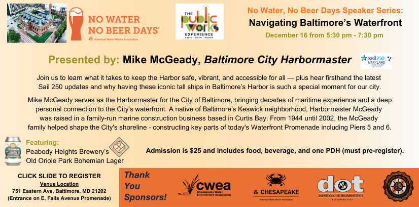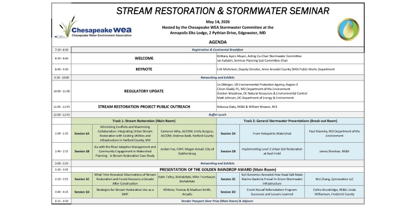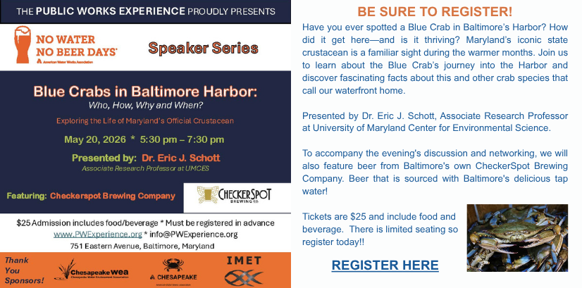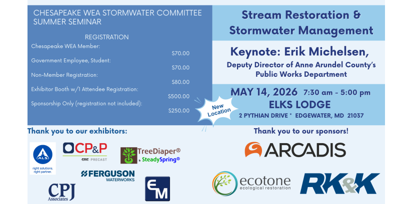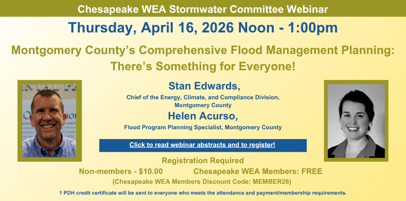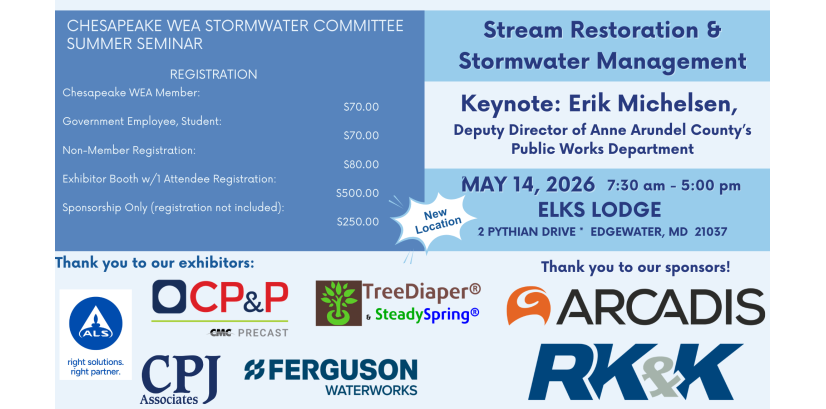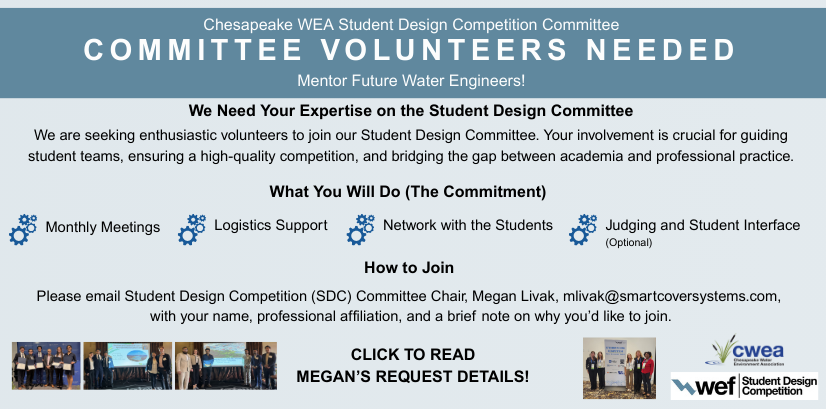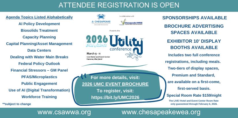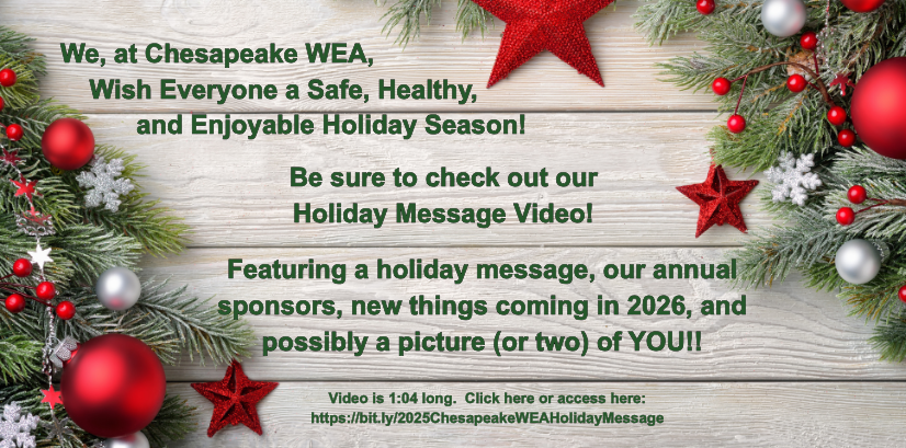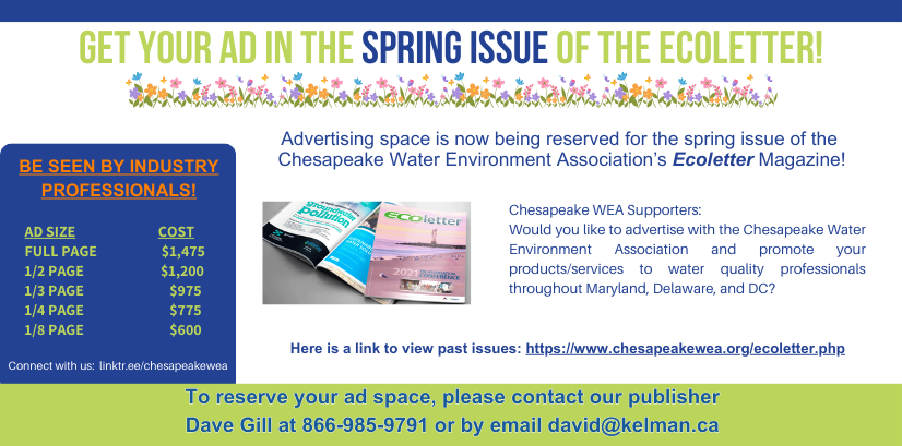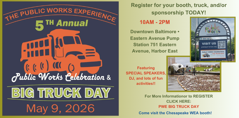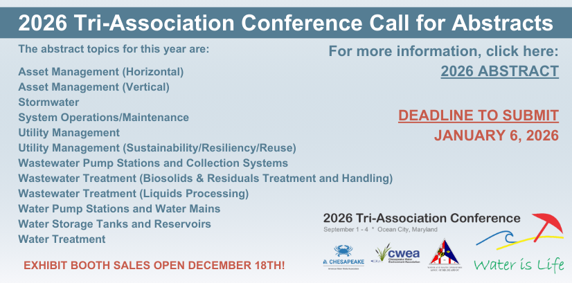 The Chesapeake Water Environment Association is dedicated to improving water quality and protecting the water environment in Delaware, Maryland, and the District of Columbia. The Association strives to do this through public education, the exchange of technical and scientific information among water quality professionals, the training of wastewater and water treatment plant operators, and by offering technical expertise and advice to the law-making and regulatory processes.